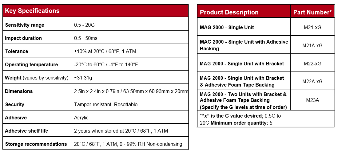 The MAG 2000 impact indicator is a cost-effective, resettable and reusable device designed to monitor the handling of