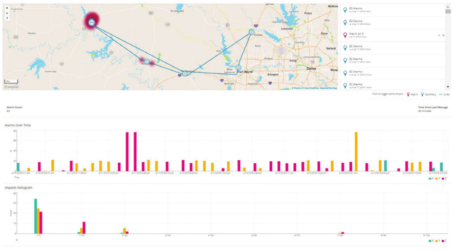 在此過程中,ShockLog Satellite (之前正式名稱為ShockTrak)利用移動(dòng)網(wǎng)絡(luò)在發(fā)生潛在破壞性震動(dòng)沖擊時(shí)發(fā)出警報(bào)。